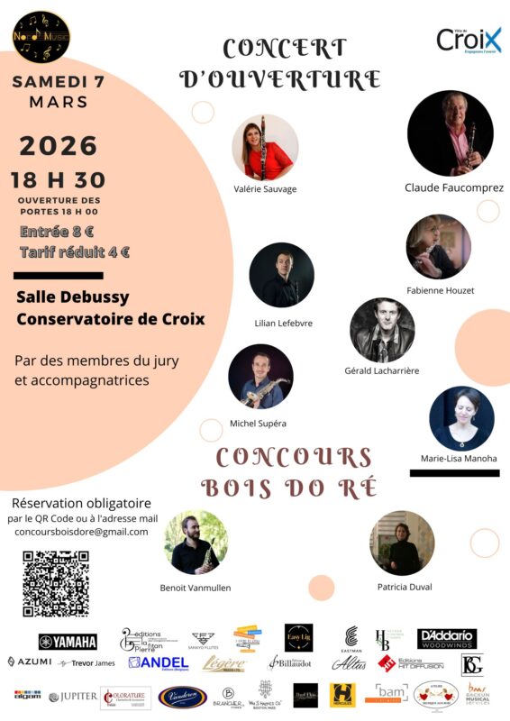 Dans le cadre du concours Bois Do/Ré, le Conservatoire de Croix accueille et propose un concert d’ouverture réunissant des membres du jury & accompagnants. Cette année, clarinette, saxophone, flûte et hautbois sont à l’honneur !