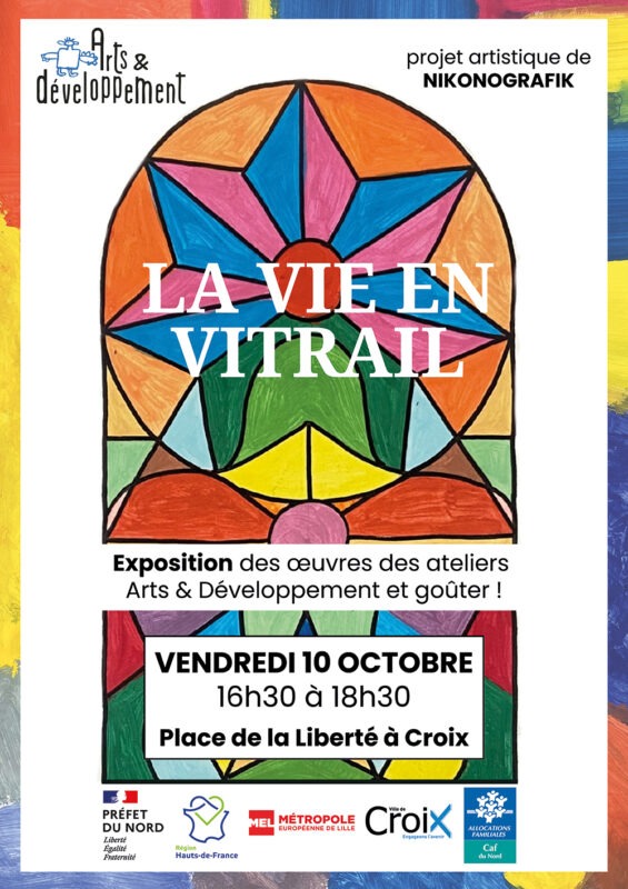 Intitulée « La vie en vitrail », l’exposition se tiendra le vendredi 10 octobre, de 16h30 à 18h30, sur la place de la Liberté, en même temps que l’atelier du jour. Accompagnées par l’artiste Nicolas Boulogne (Nikonografik), les familles ont imaginé et dessiné des images morcelées et colorées afin de concevoir des vitraux qui habilleront la façade de l’église Saint-Pierre le temps de l’événement. Les dessins libres produits au fil des ateliers depuis le mois d’avril seront également présentés 🎨.