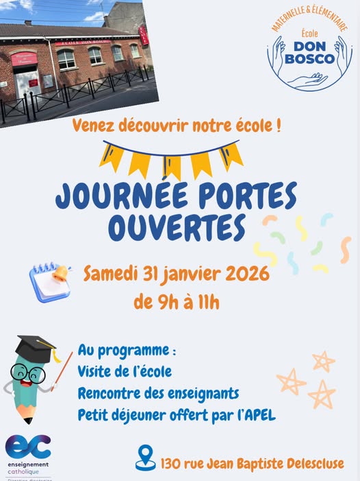 L’école Don Bosco ouvre ses portes aux familles le samedi 31 janvier 2026, de 9h à 11h.