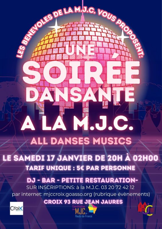 Les bénévoles de la MJC vous invitent à une grande soirée dansante ouverte à toutes et tous 🪩.