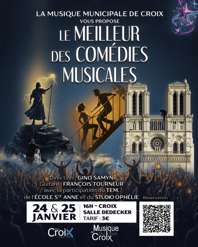 Pour son concert du nouvel an, la Musique Municipale de Croix vous invite à venir écouter les plus belles musiques des comédies musicales !